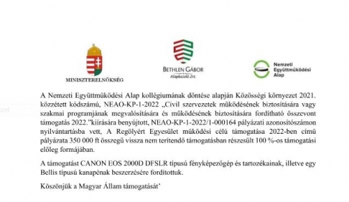 Köszönjük a Magyar Állam támogatását! Regölyért Egyesület